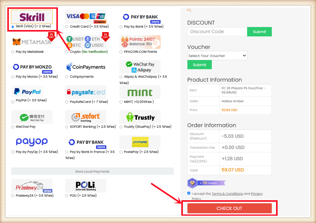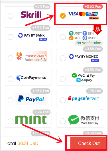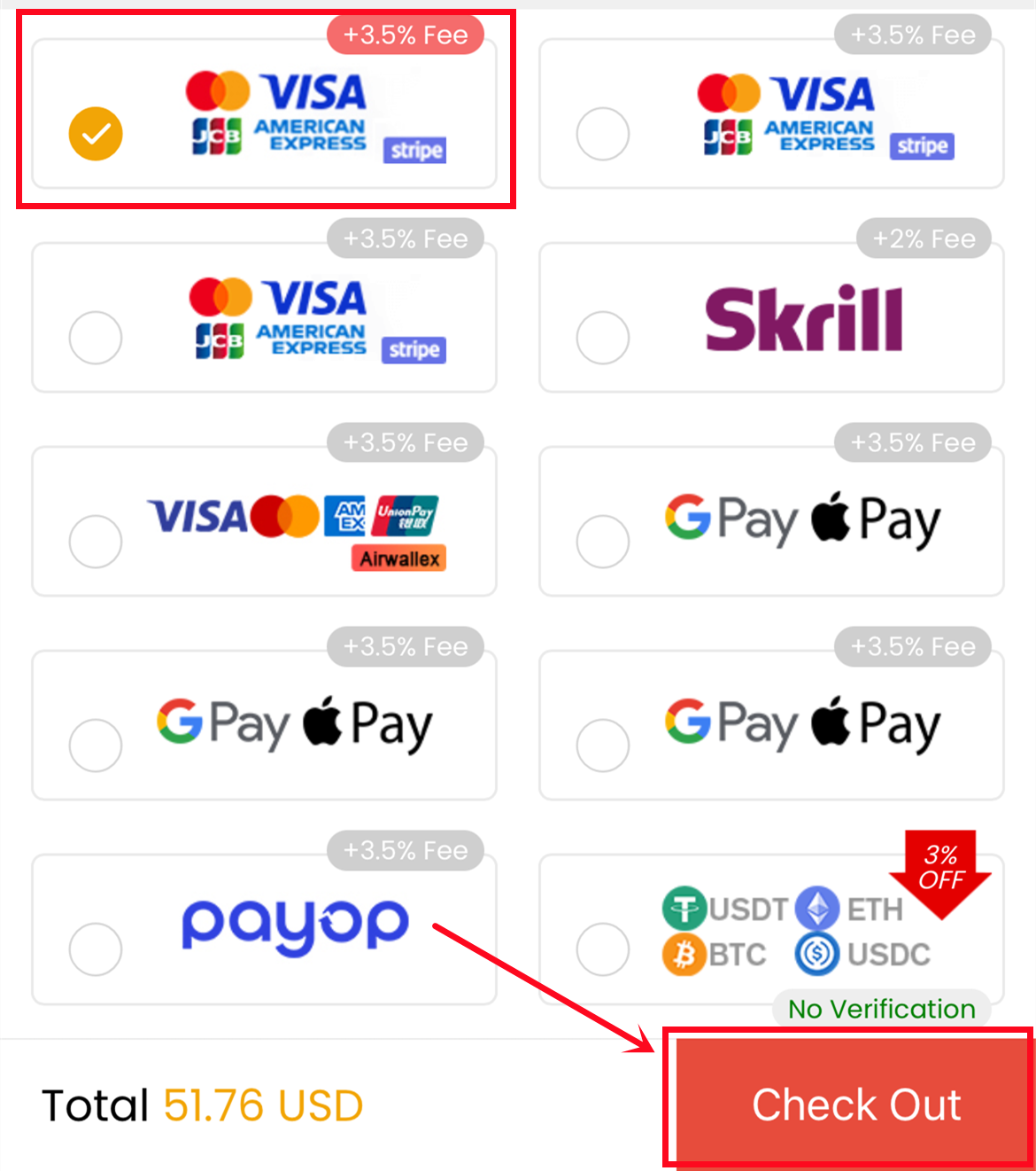 3. You'll be led to the payment page, select one of the payment methods and send your payment.