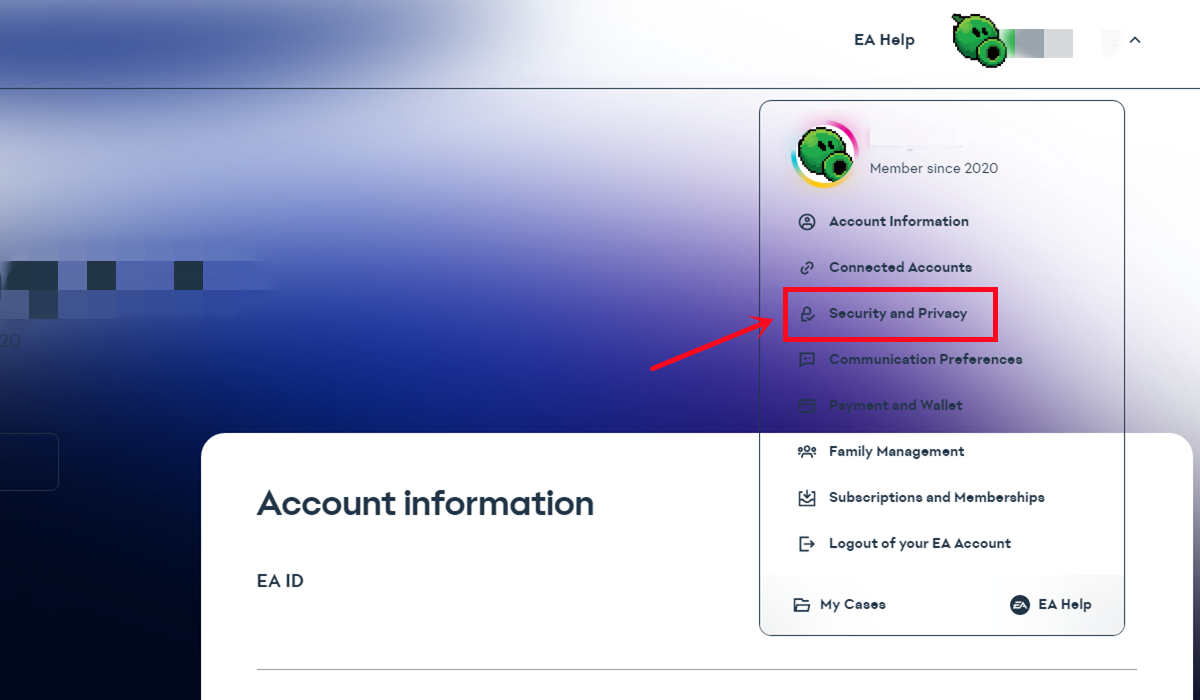 1. Log in to your EA account on ea.com