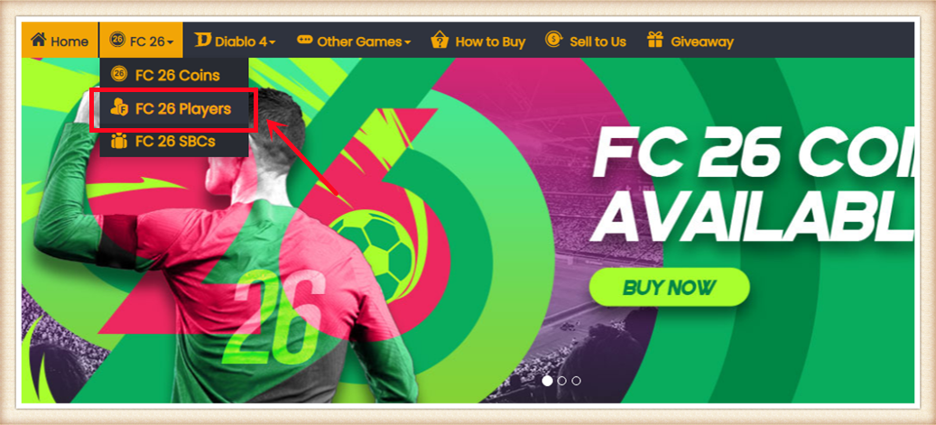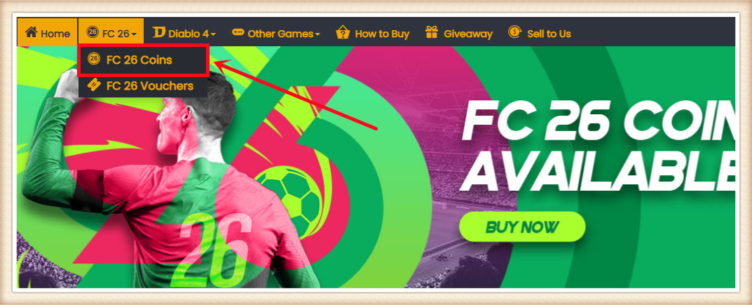 1. 下单前请登录会员账户,选择 "FC 26" 并点击 "FC 26 金币"。