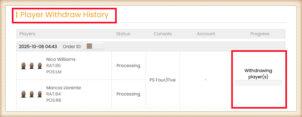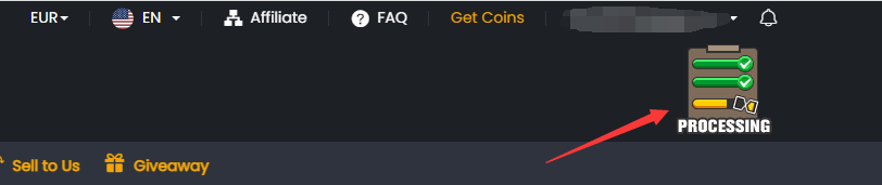 1. You will get your order ID notification emails from M8X. After withdrawing coins/gold, you can track the order details by clicking on the processing icon on our website's home page.
