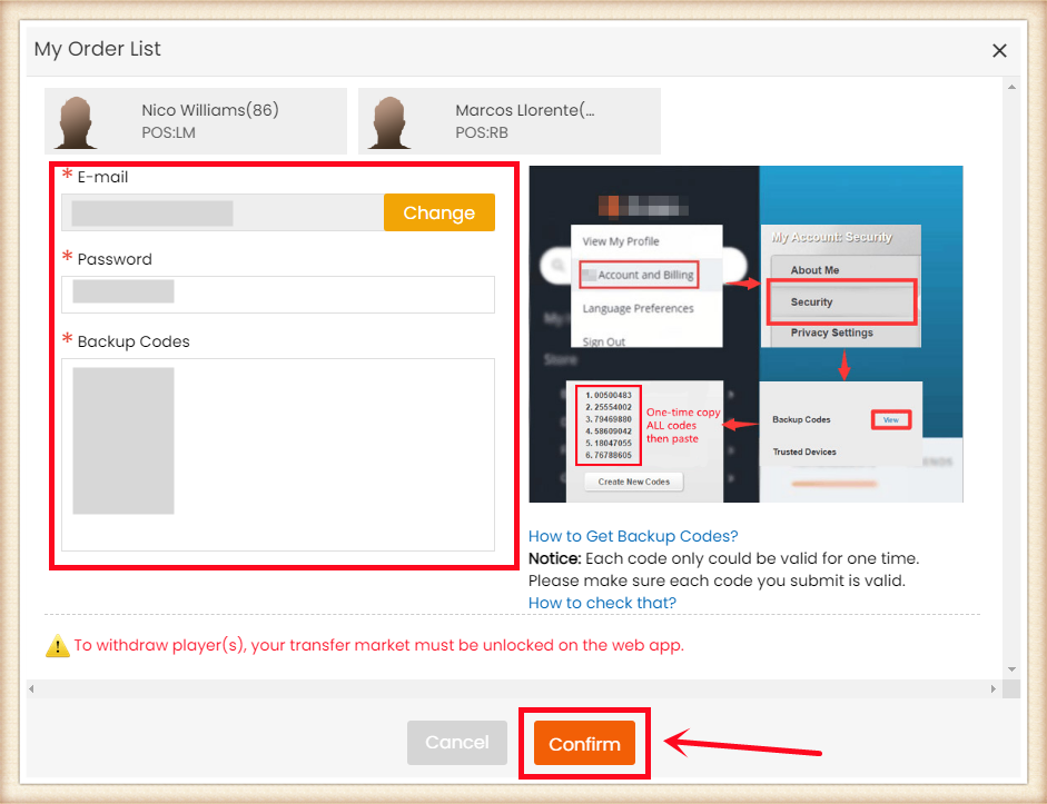 2. When it's unlocked, get coins again to submit your correct EA account details. The order will be kept on our site, with no expiration before the next version of FC release.