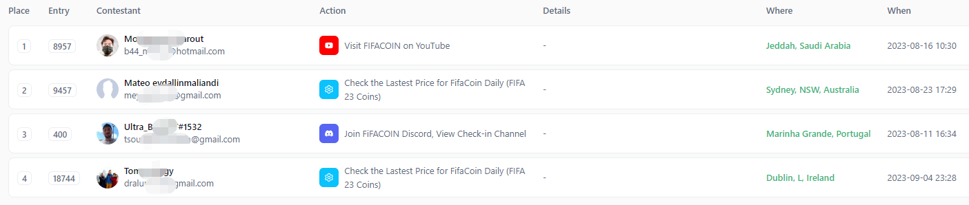 Thanks for everyone spending the time to join every event at FIFACOIN! Let's see the list of WINNERS together.