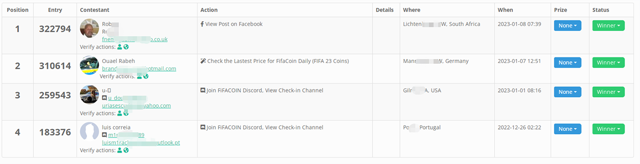 Thanks for everyone spending the time to join every event at FIFACOIN! Let's see the list of WINNERS together.