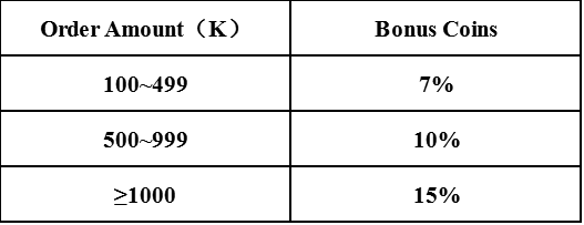 Up To 15% Bonus For Any Single Order ≥100K Coins