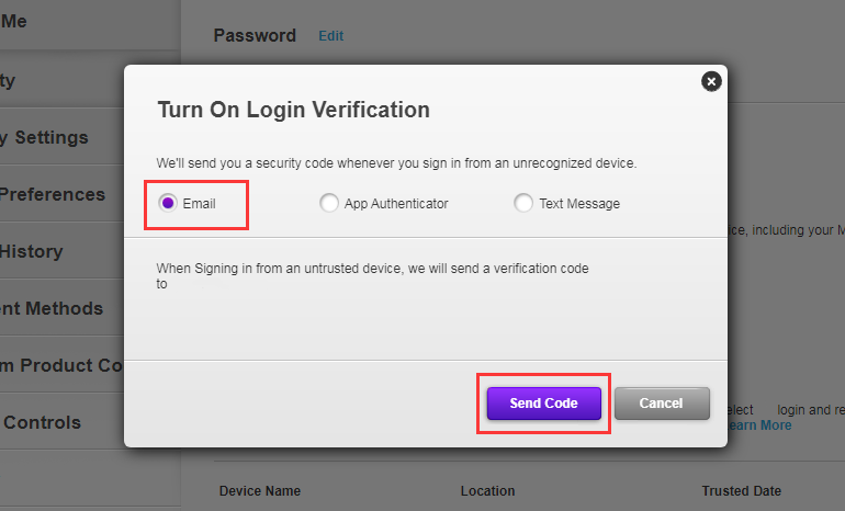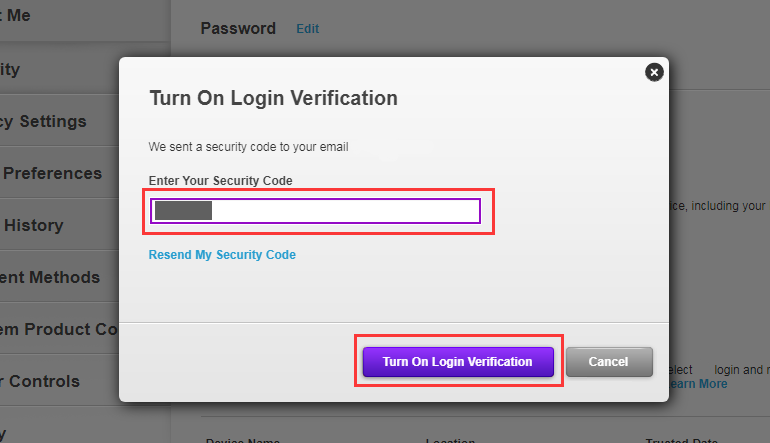 5. 检查您的电子邮箱,输入您收到的验证码,然后 “打开登录验证”。